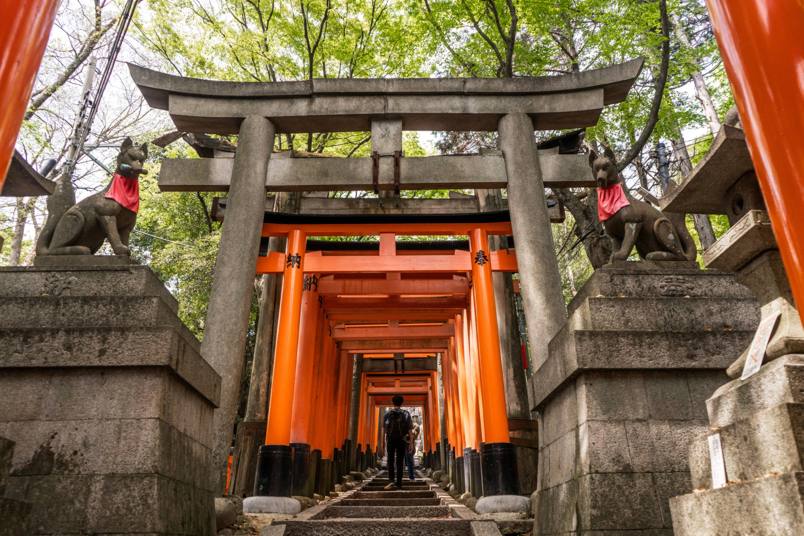 - Đền Ngàn Cột (Fushimi Inari Taisha) – biểu tượng linh thiêng của Kyoto – gây ấn tượng với hàng nghìn cổng torii đỏ rực kéo dài bất tận giữa triền núi xanh. Bước đi dưới những cánh cổng uốn lượn, bạn như lạc vào không gian vừa huyền bí vừa trầm mặc, thấm đẫm tinh thần truyền thống Nhật Bản. Mỗi góc dừng chân đều đẹp như một thước phim, khiến ai cũng muốn ghi lại thật nhiều khoảnh khắc.