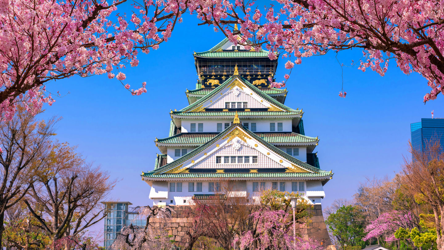 - Lâu đài Osaka – nằm trên đồi, bao quanh bởi công viên rộng lớn với hàng ngàn cây anh đào, mơ, mận. Quý khách tham quan, chụp hình bên ngoài và picnic thư giãn, ngắm lâu đài từ nhiều góc đẹp (tùy thời tiết).