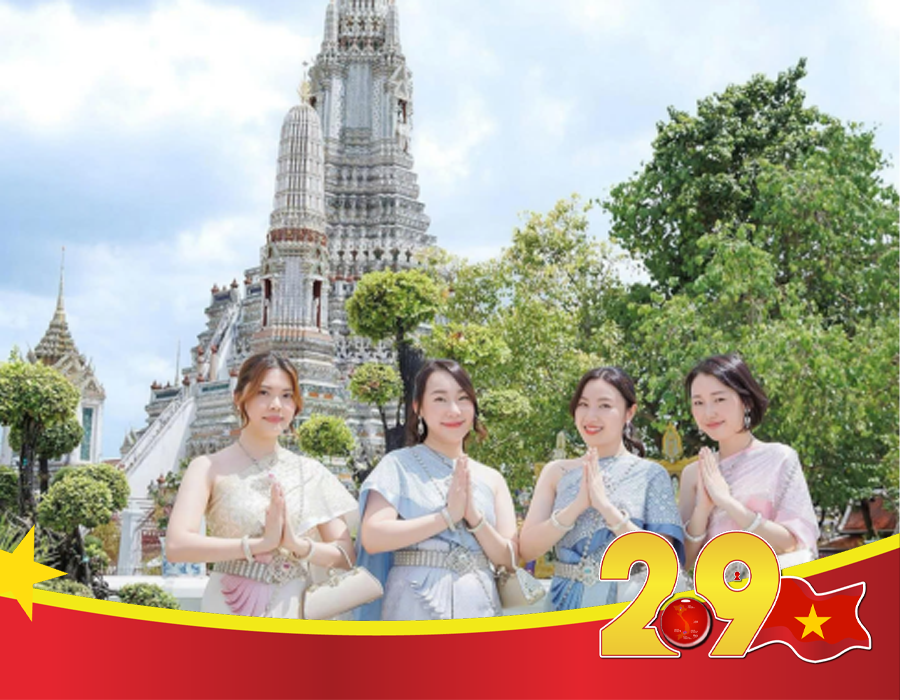 Chiều: Sau khi dùng bữa trưa, quý khách sẽ được đến viếng đền Phật Bốn Mặt linh thiêng tọa lạc ngay tại trung tâm thủ đô Bangkok. Sau đó tự do tham quan mua sắm, quý khách dùng bữa tối tự túc tại các siêu thị như Big C, Central World, Siam Paragon hay chợ sỉ Platinum,…